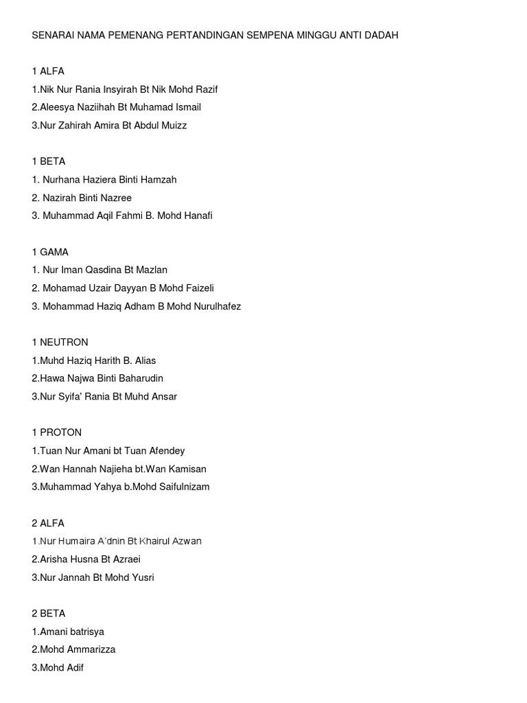SENARAI NAMA PEMENANG PERTANDINGAN MEWARNA ANTI DADAH 2018 Tarikh. Kesan Serta-Merta - Tingkahlaku agresif tekanan darah tinggi berjaga tanpa tidur 2-3 hari. Jalan Maktab Perguruan Islam.