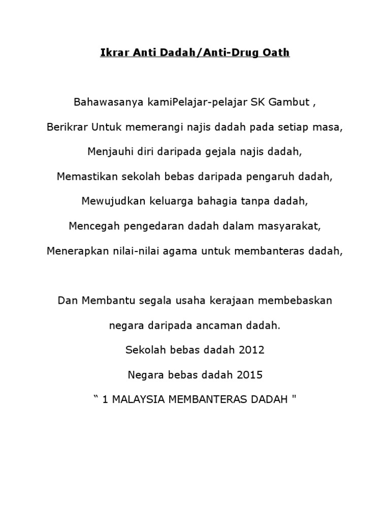 Contextual translation of tamil karangan dadah. Good morning everybody please allow me to introduce myself. Akta dadah berbahaya telah diperkenalkan di malaysia sejak 1952.