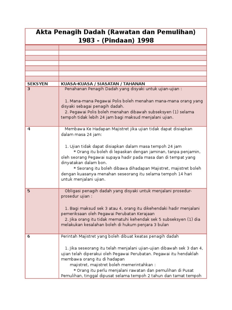 5202021 AKTA PENAGIH DADAH RAWATAN DAN PEMULIHAN 1983 PDF - Akta Dadah Berbahaya ADB telah dipinda pada tahun sebagai tanda dasar. 8252020 Kesemua yang ditangkap akan ditahan selama 24 di bawah Seksyen 31 Akta Penagih Dadah Rawatan. Pekeliling dan Dasar Pengurusan ICT.