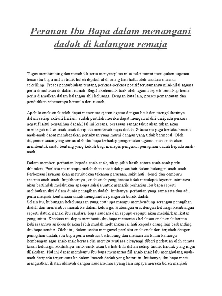Peranan Ibu Bapa Dalam Menangani Dadah Di Kalangan Remaja
